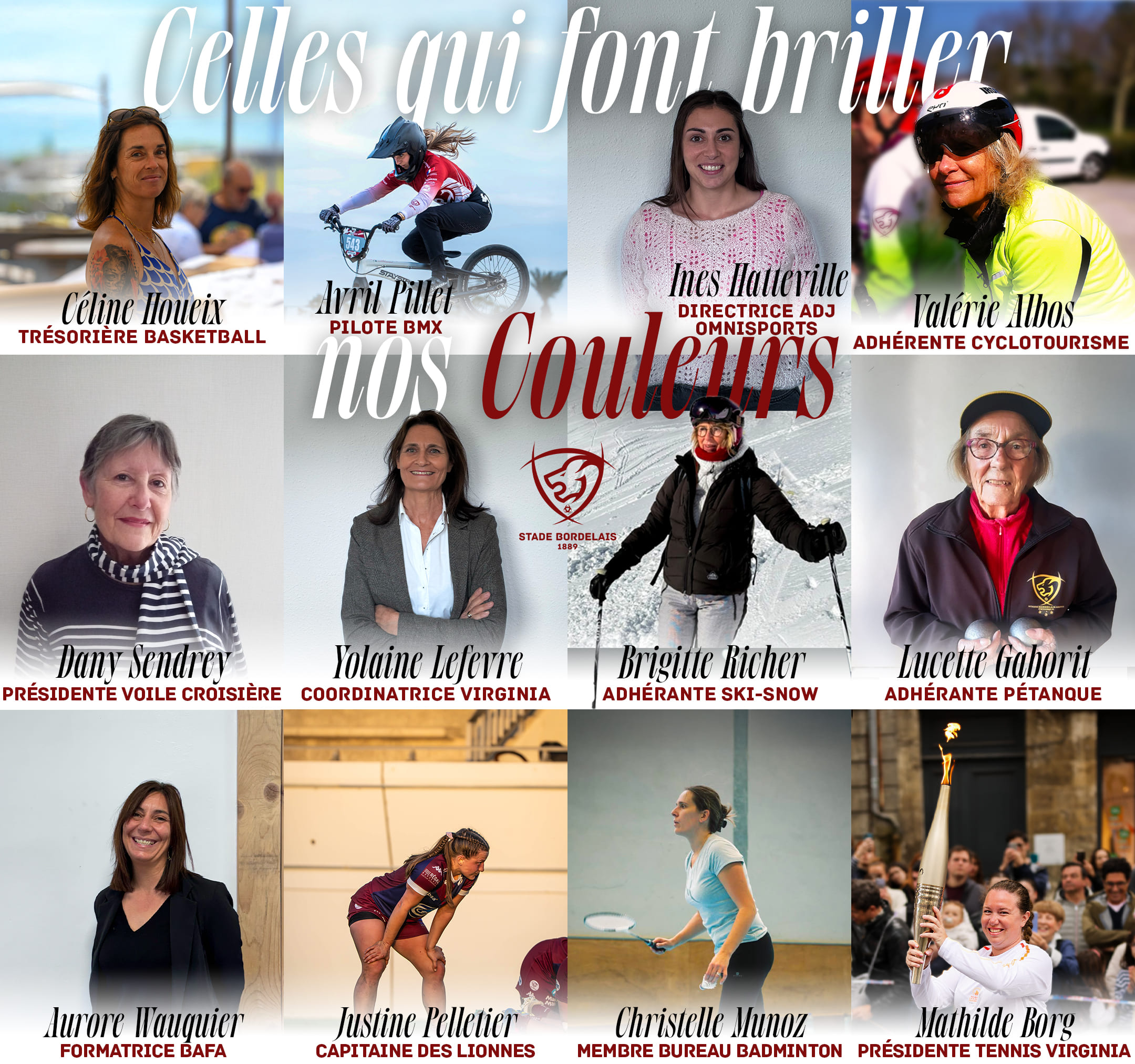 Au sein des différentes sections, les femmes occupent de nombreux rôles et participent activement à la dynamique du club : dirigeantes, bénévoles, encadrantes, salariées ou encore athlètes. Par leur engagement, leurs compétences et leur passion, elles contribuent chaque jour au développement et au rayonnement du Stade Bordelais.