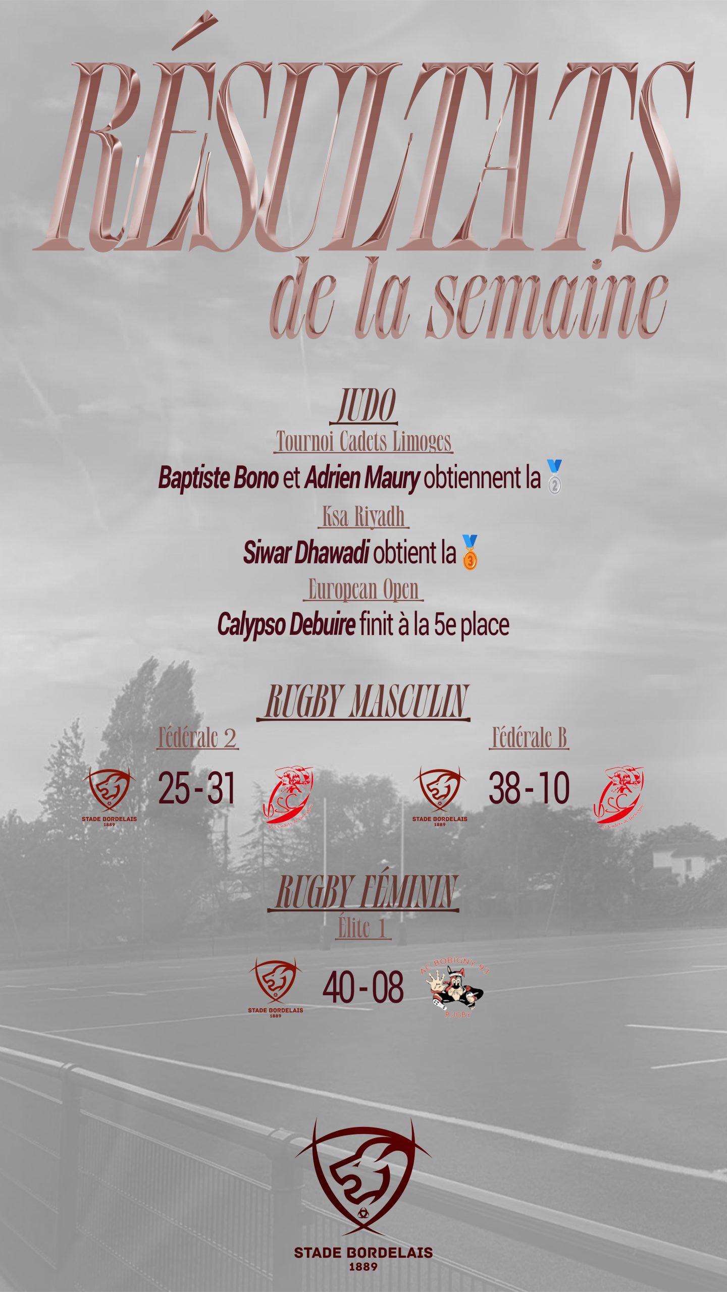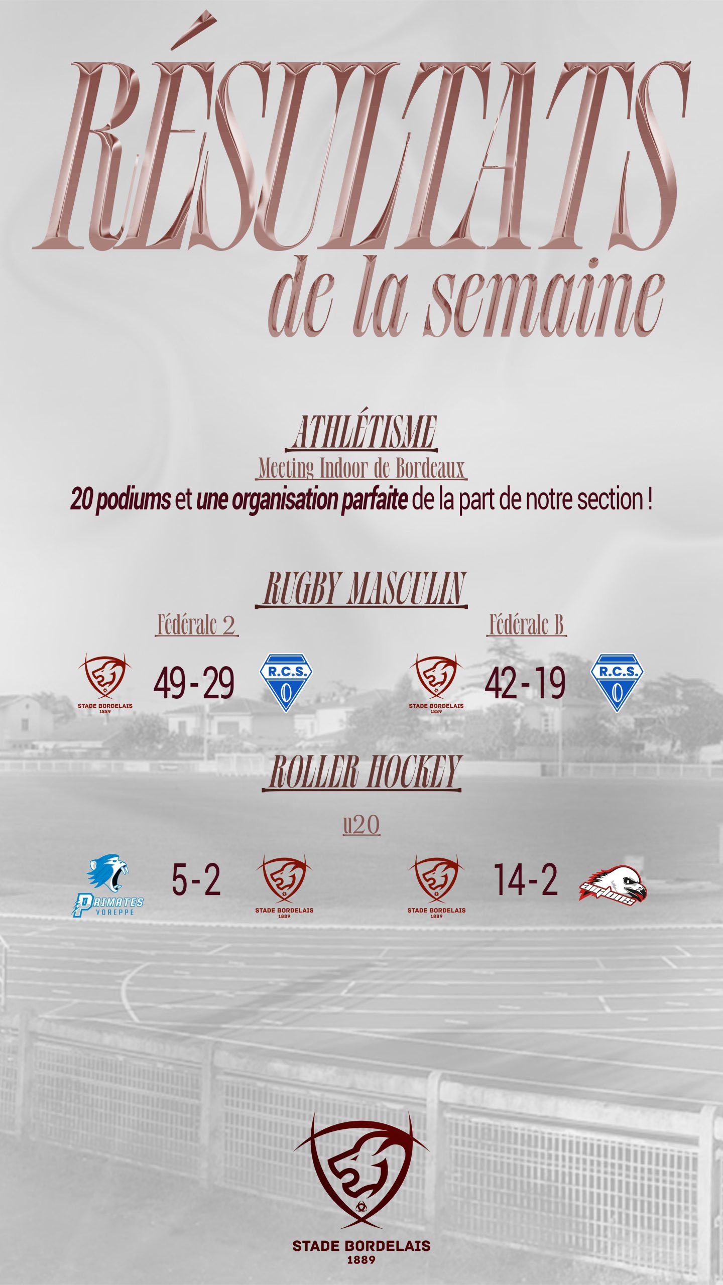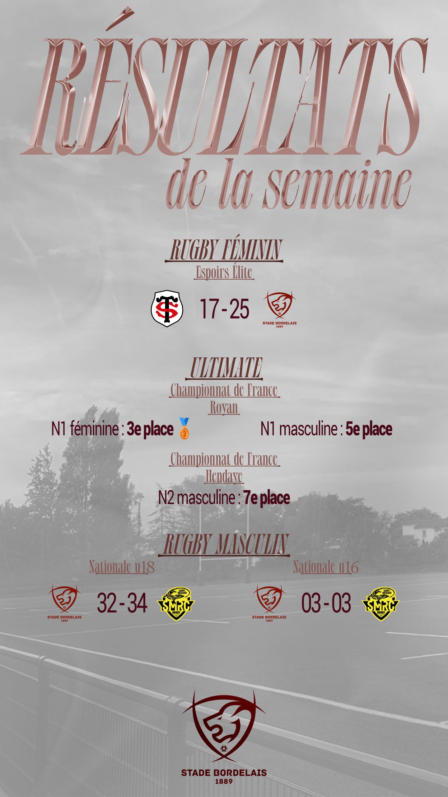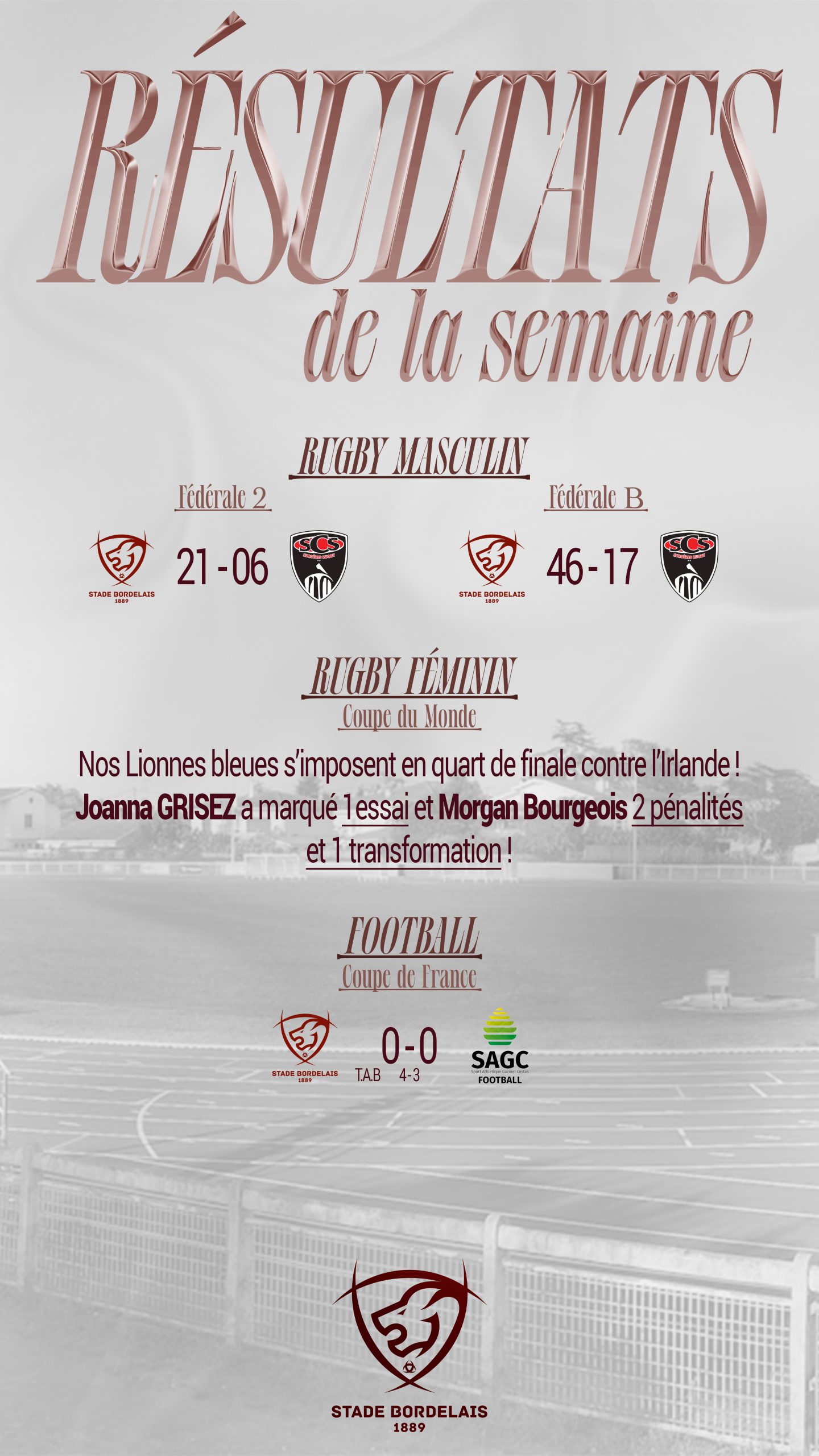 Ici, vous retrouverez les temps forts des sections du Stade Bordelais !