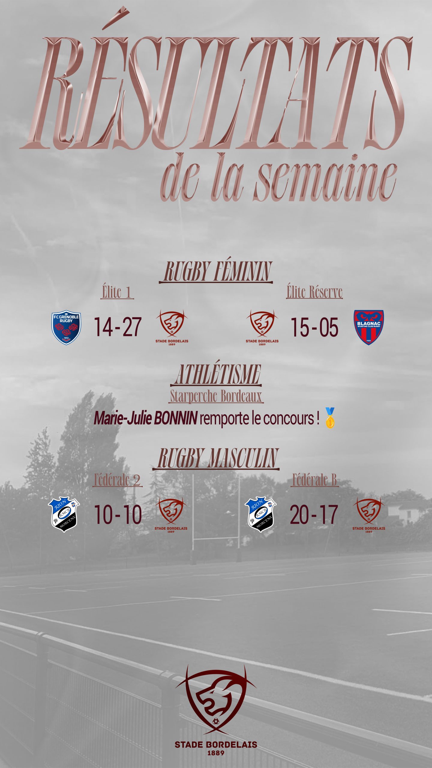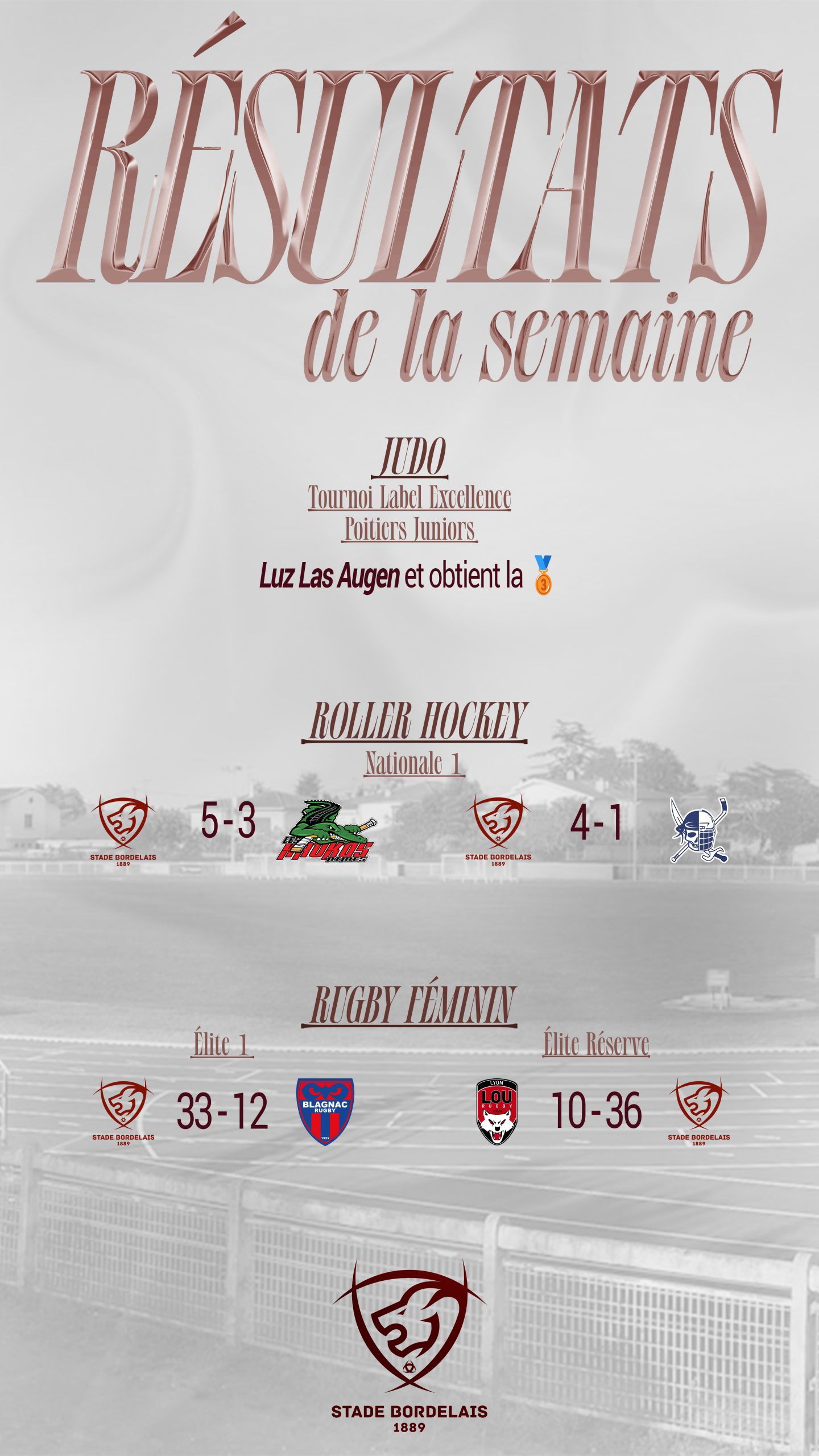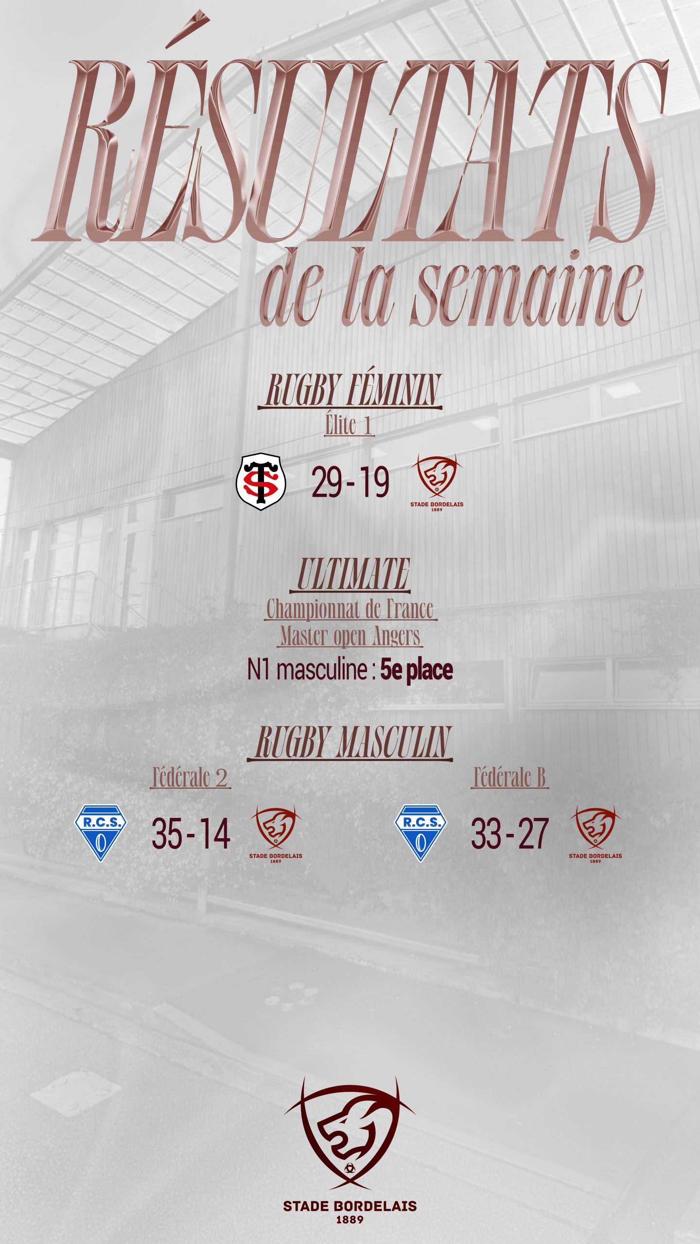 Ici, vous retrouverez les temps forts des sections du Stade Bordelais !