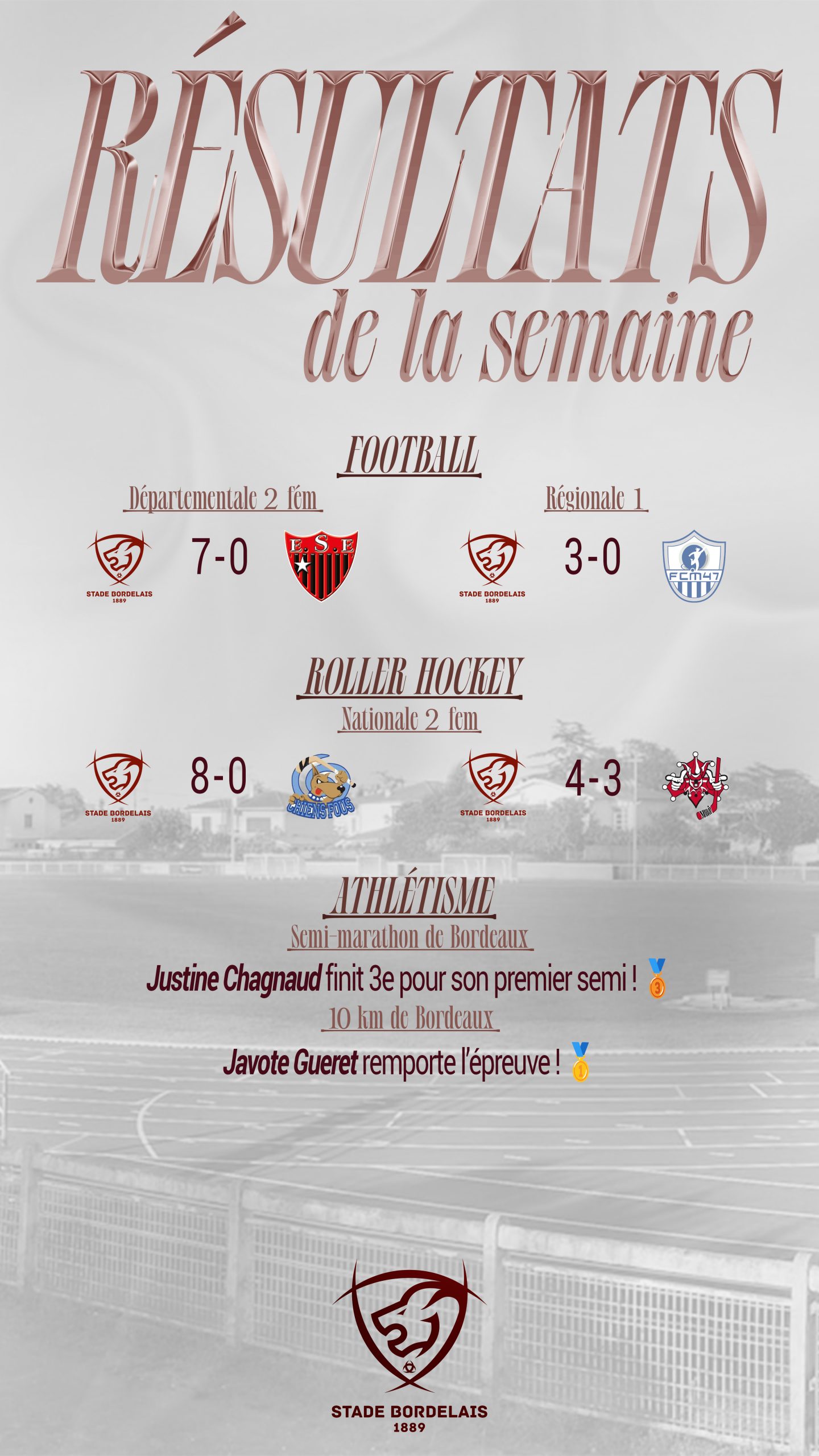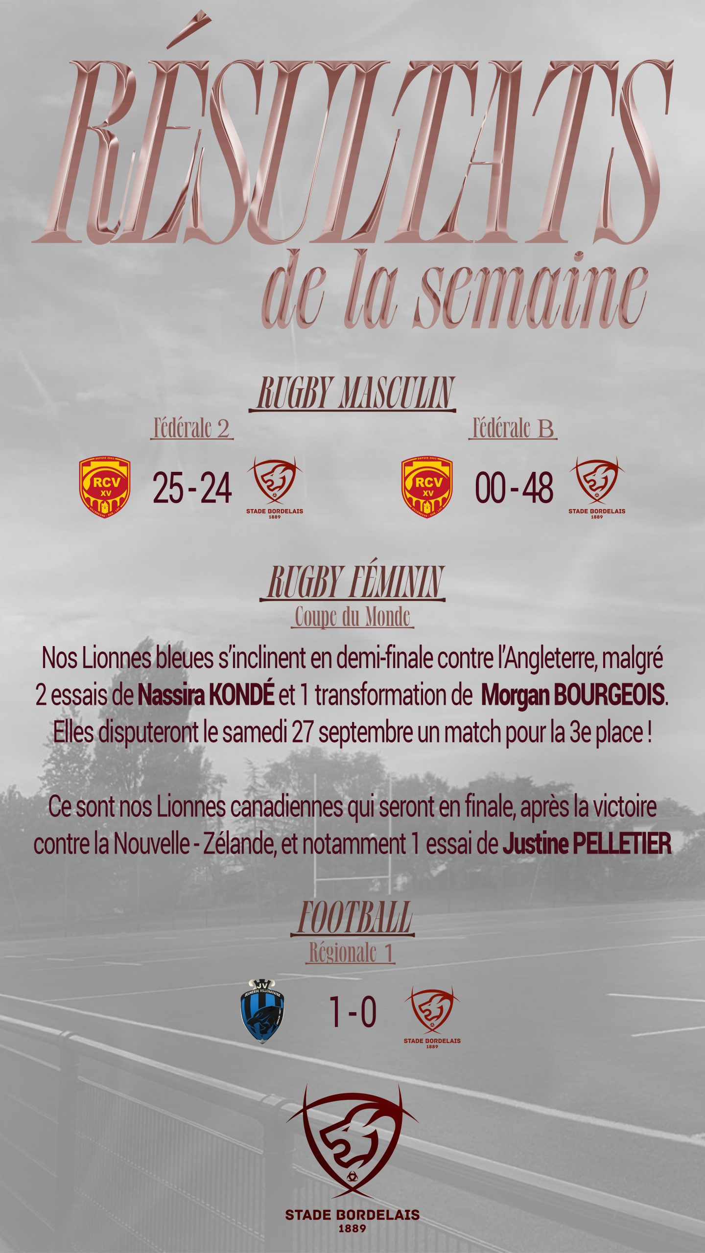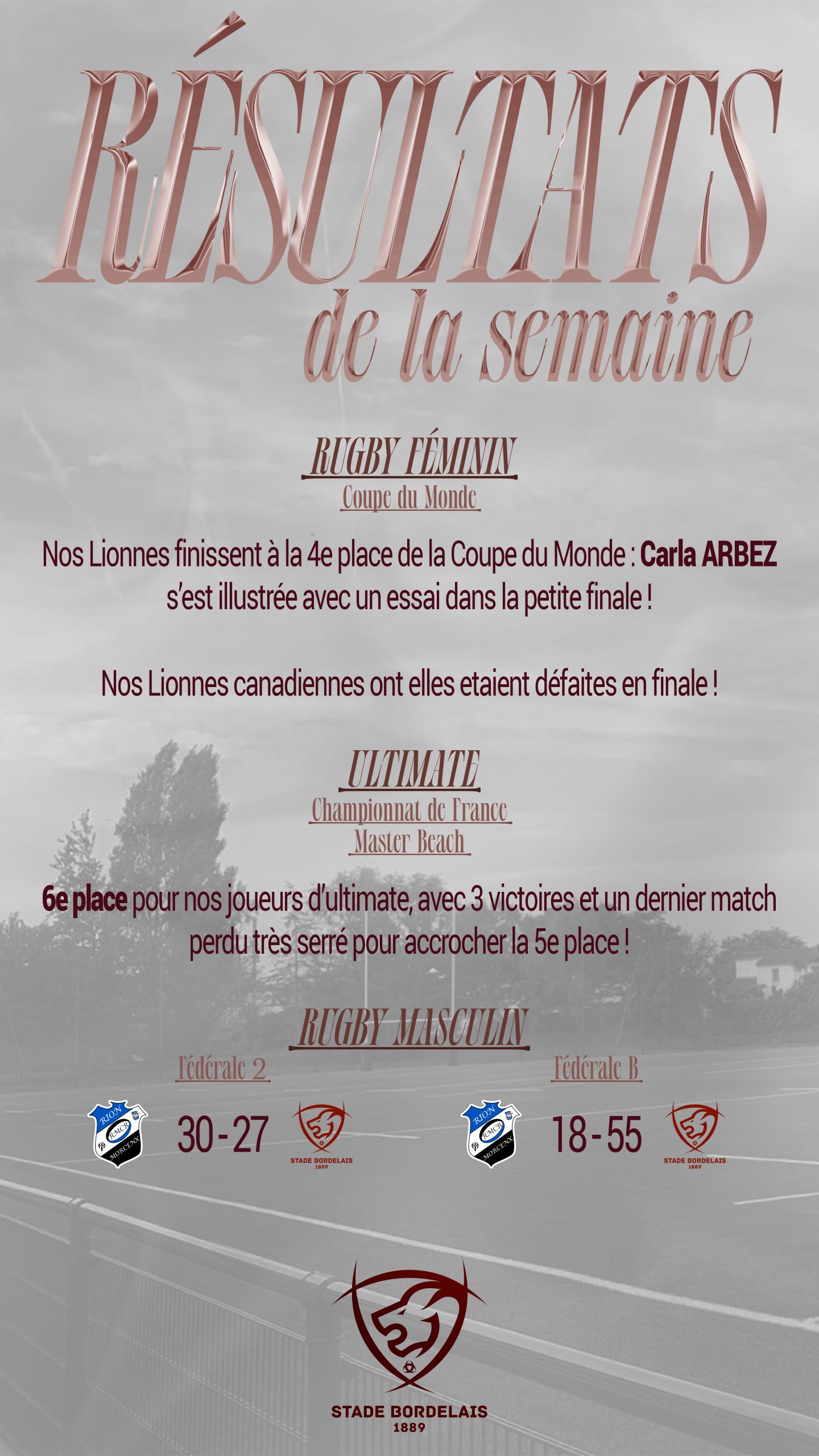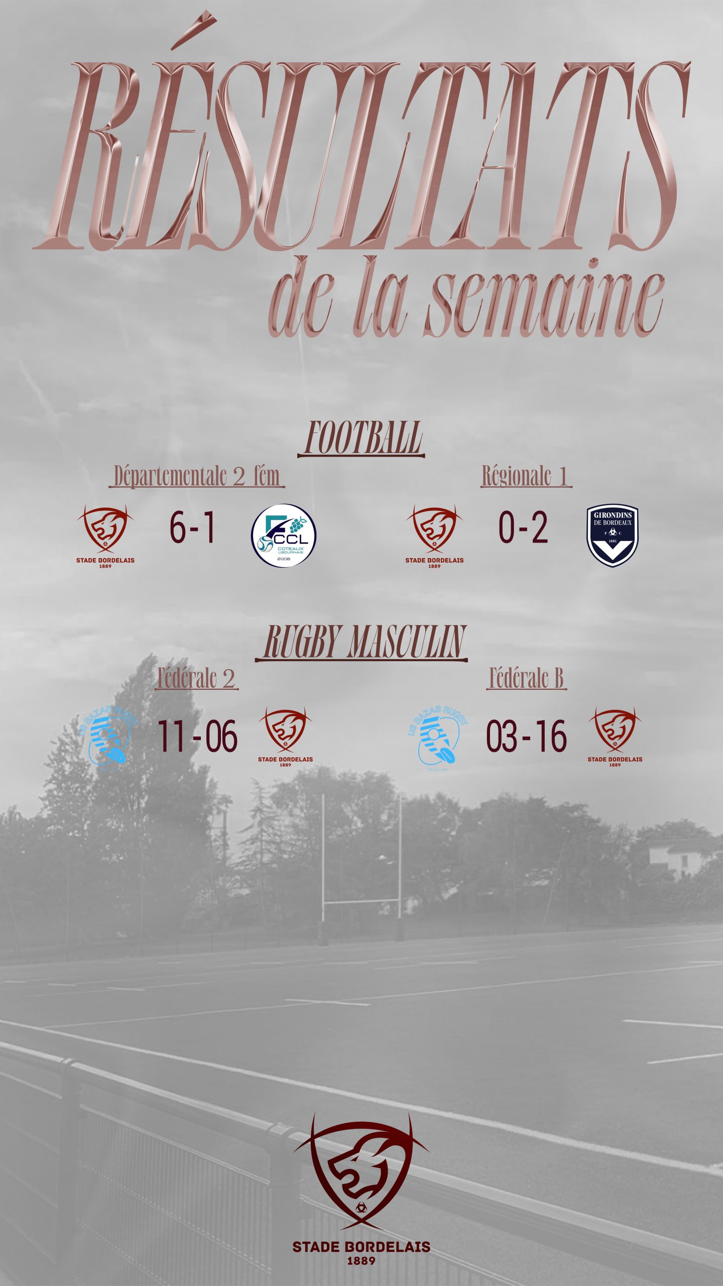 Ici, vous retrouverez les temps forts des sections du Stade Bordelais !