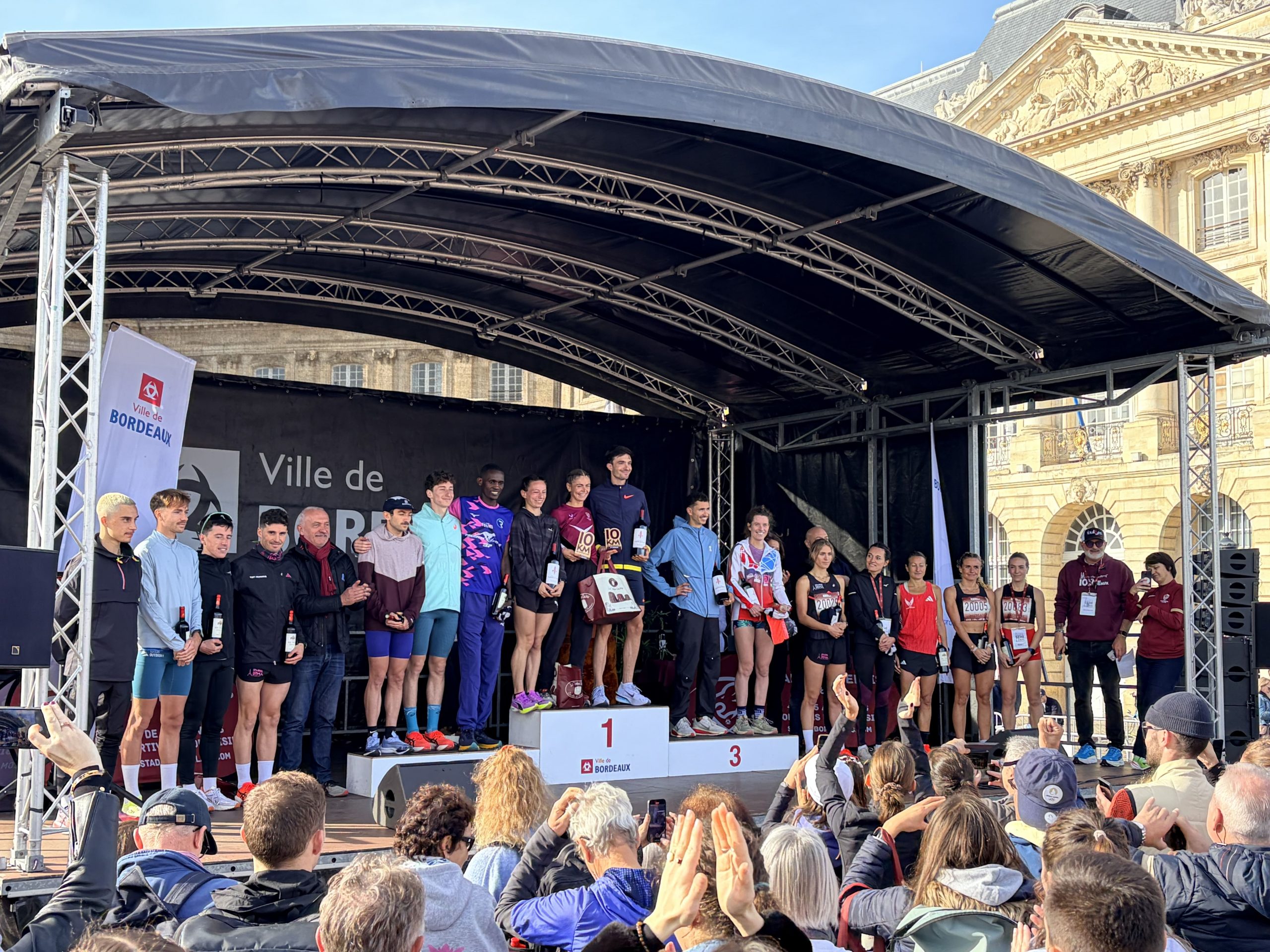 Côté performance, les participants n’ont pas perdu de temps ! Sur le 10 km, Hugo HAY a réalisé une performance impressionnante avec un chrono de 27’43″ pour remporter l’épreuve. Chez les féminines, c’est notre Bordelaise et licenciée du Stade Javote GUERET, qui s’impose avec un très beau chrono de 32’07″. Sur le semi-marathon, il y a également eu de belles performances : Jason POINTEAU s’est imposé en 1h03’18″ chez les hommes, tandis que Melody JULIEN remporte la course féminine avec un chrono de très haut niveau de 1h09’11″. Toujours chez les féminines, une autre Bordelaise s’est illustrée : Justine CHAGNAUD termine 3e du semi-marathon pour sa toute première participation !